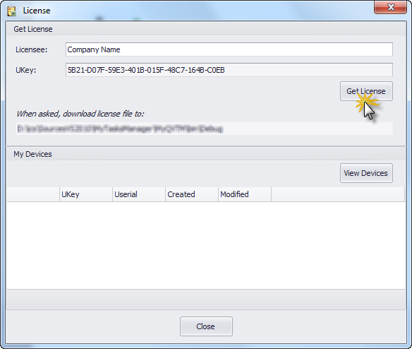 Fill in "Licensee" field then click <Get License> button: