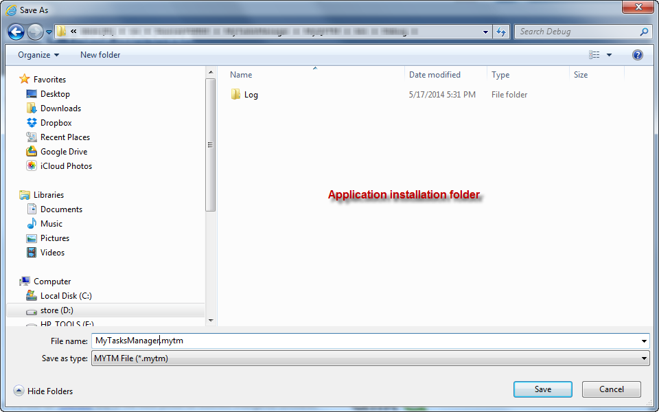 Note: do not change the file name or extension (MyTaskManager.mytm)